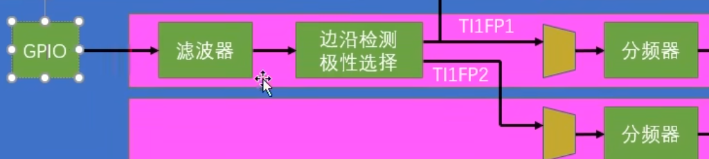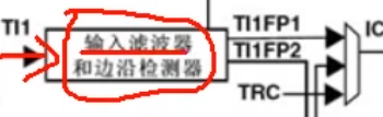 其实它设计了两套滤波的选择,第一套经过滤波和极性选择,输入给通道1,第二套经过滤波和极性选择,得到TI1FP2。