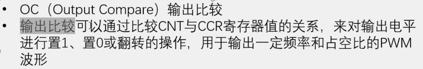 对比输出比较,输出比较引脚是输出端口,是根据CNT和CCR的大小关系来进行输出动作
