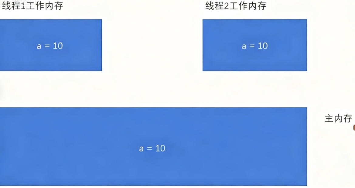 • 当线程要修改⼀个共享变量的时候,也会先修改工作内存中的副本,再同步回主内存. 由于每个线程有自己的总顾总内存,这些工作内存中的内容相当于同⼀个共享变量的"副本".此时修改线 程1的⼯作内存中的值,线程2的工作内存不⼀定会及时变化.