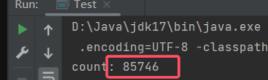 count++这一非原子操作 单独加锁,而for循环的i < 5w判断、i++操作仍可并发执行。 - 效果 :