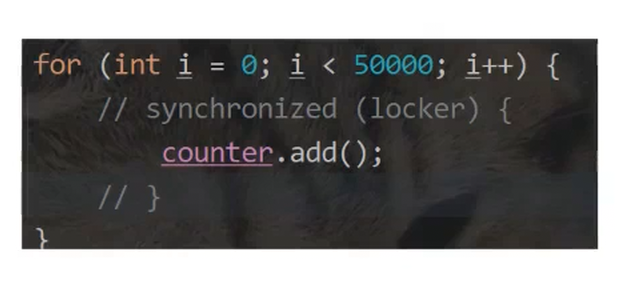 // 对 count 变量进⾏⾃增 5w 次