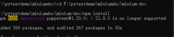 4、cd到minium-doc目录下,执行npm install: