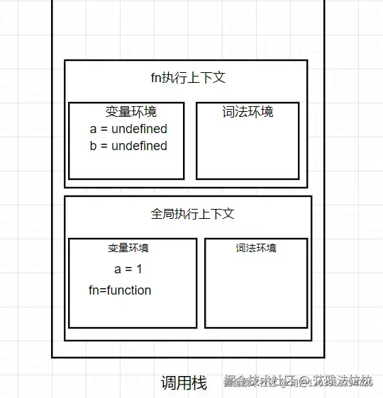 css// 编译阶段 全局执行上下文 = { 变量环境: { a: undefined, fn: function }, 词法环境: {}, 可执行代码: "a = 1; fn(3);" } -