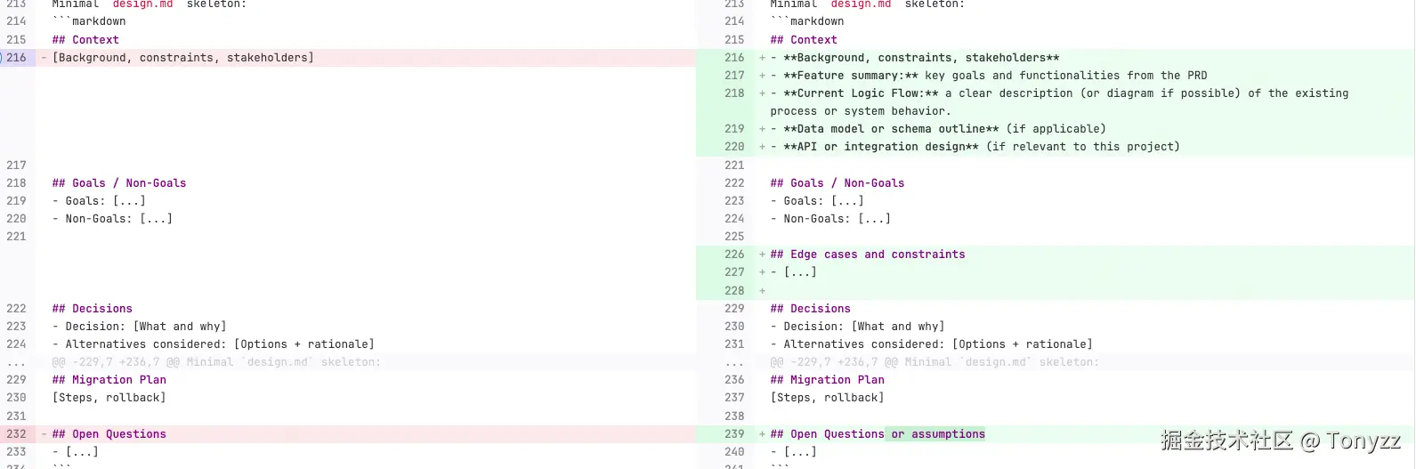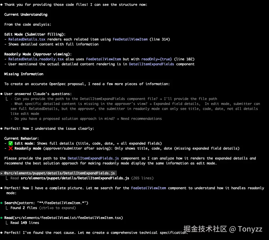 模型是根据 openspec提供的 AGENT.md来生成文档规范的,咱们可以微调提示词让其满足自己的需求。没有标准答案,只要能提高效率、帮助到咱们开发都是好答案。