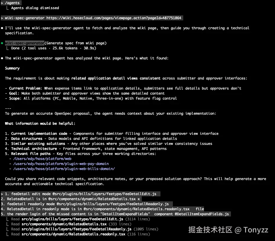 基于上面的流程,可以创建了一个 wiki-spec-generator agent。