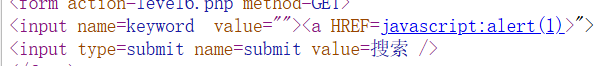 那么需要使用a标签的JavaScript伪协议实现href属性支持**JavaScript:**伪协议,则:后面的代码会被当成JavaScript来执行。注意这里还需要闭合input标签。