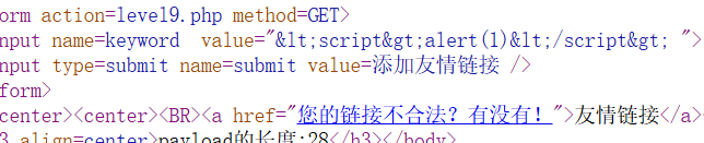 诶,好像链接合法了,但是http://在前面是无法执行JavaScript,那么如何去除呢,我们想到这个是php代码,是不是可以用双斜杠进行注释,http://放到最后面不就注释掉了嘛。注意这关也需要实体化字符串
