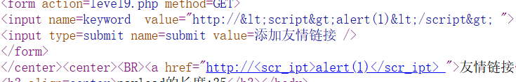 发现href被过滤了 script也被过滤大小写也被过滤了。这里因为是替换为空字符,我们可以通过双写注入进行绕过。