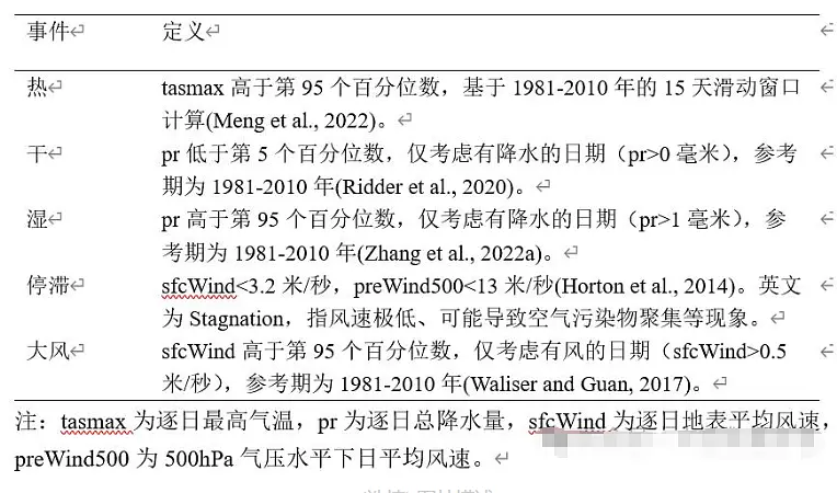 ERA5_event、CMIP6压缩包包含了全球0.5°逐年复合极端干-热、湿-热、湿-大风和干-热-大风等复合极端气候事件的空间范围、发生频次、持续时间、严重程度和起止时间数据。