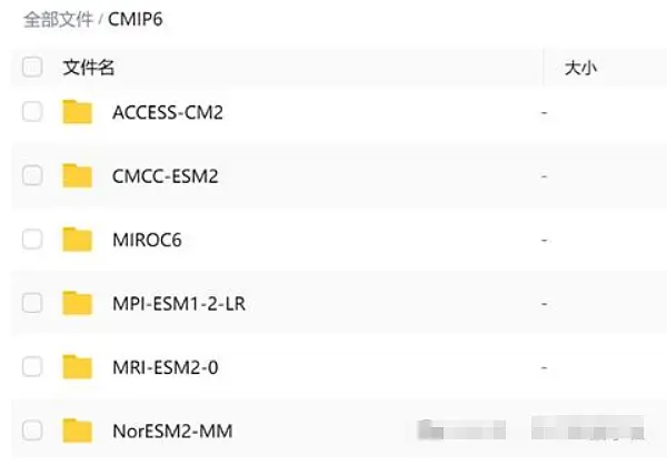 我们再来看**CMIP6压缩包。**CMIP6数据包括了1951-2014年的事实数据和2015-2100年的预测数据。而且该数据集仅有热-干(hot-dry)、热-湿(hot-wet)、湿-风(wet-windy)、热-干-风(hot-dry-windy)四个复合极端气候指标。压缩包里包括了ACCESS-CM2、CMCC-ESM2、MIROC6、MPI-ESM1--2-LR、MRI-ESM2-0、NorESM2-MM等6个文件夹,每个文件夹表示一种气候模型下的极端天气数据结果。