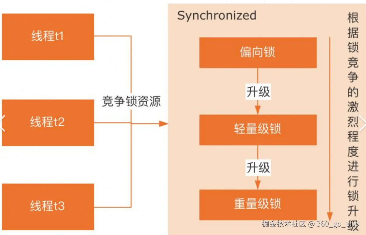 - 重量级锁:如果轻量级锁竞争非常激烈,锁会升级为重量级锁,使用操作系统层面的互斥量(Mutex)来同步,带来线程上下文切换的开销。