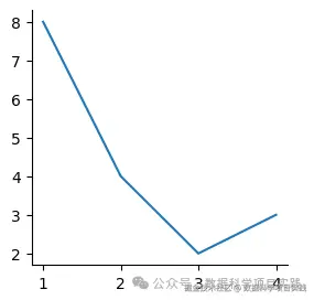 ax.plot([1, 2, 3, 4], [8, 4, 2, 3])