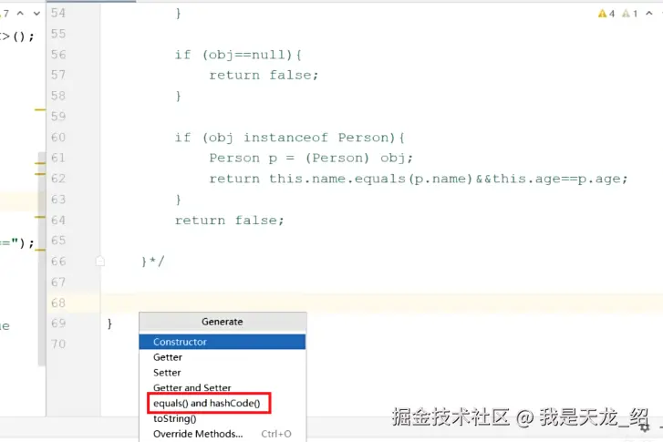 3、怎么重写:alt+insert->选toString或者equals and hashcode ->啥也不要管->一路下一步就可以了。