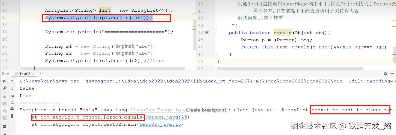 解决问题2:先判断类型,如果是Person类型,再强转Person