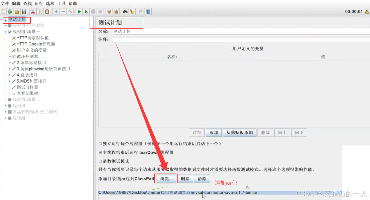 测试计划中引入数据库的驱动jar包