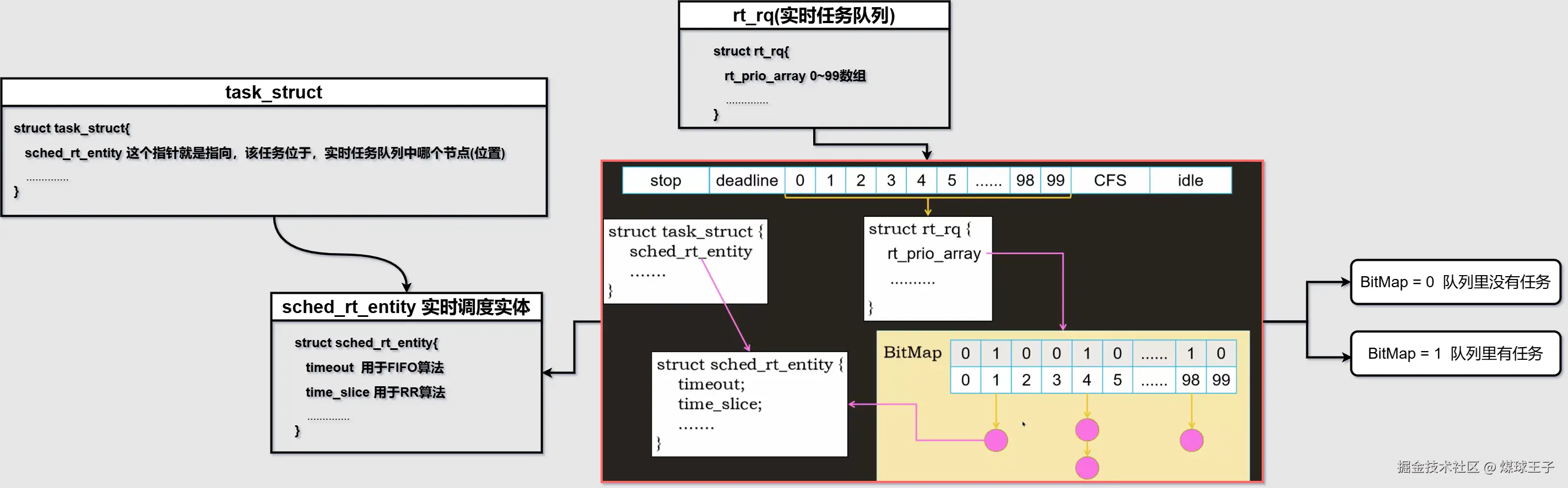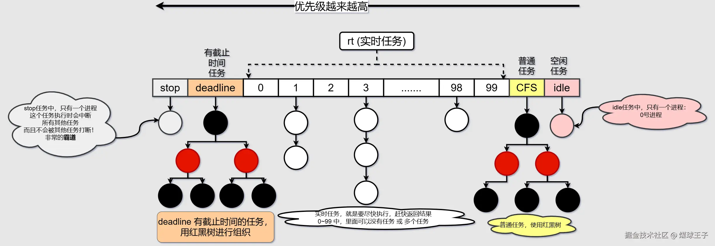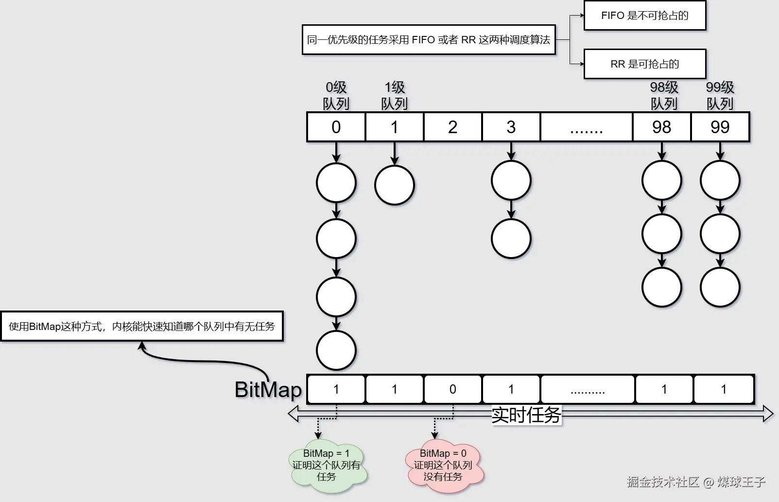(1) 实时任务 分为0~99等级,从图中可知 0级 优先级最高