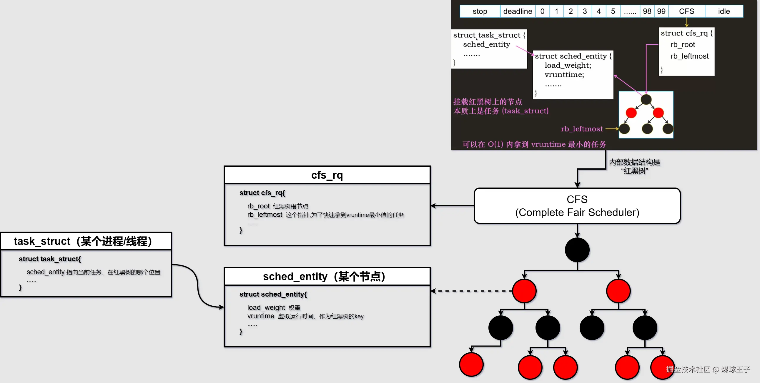 每个任务都有 vruntime , 并且可能实时改变,为了保证公平,内核需要快速拿到 vruntime 值最小的哪个任务,去调度执行。