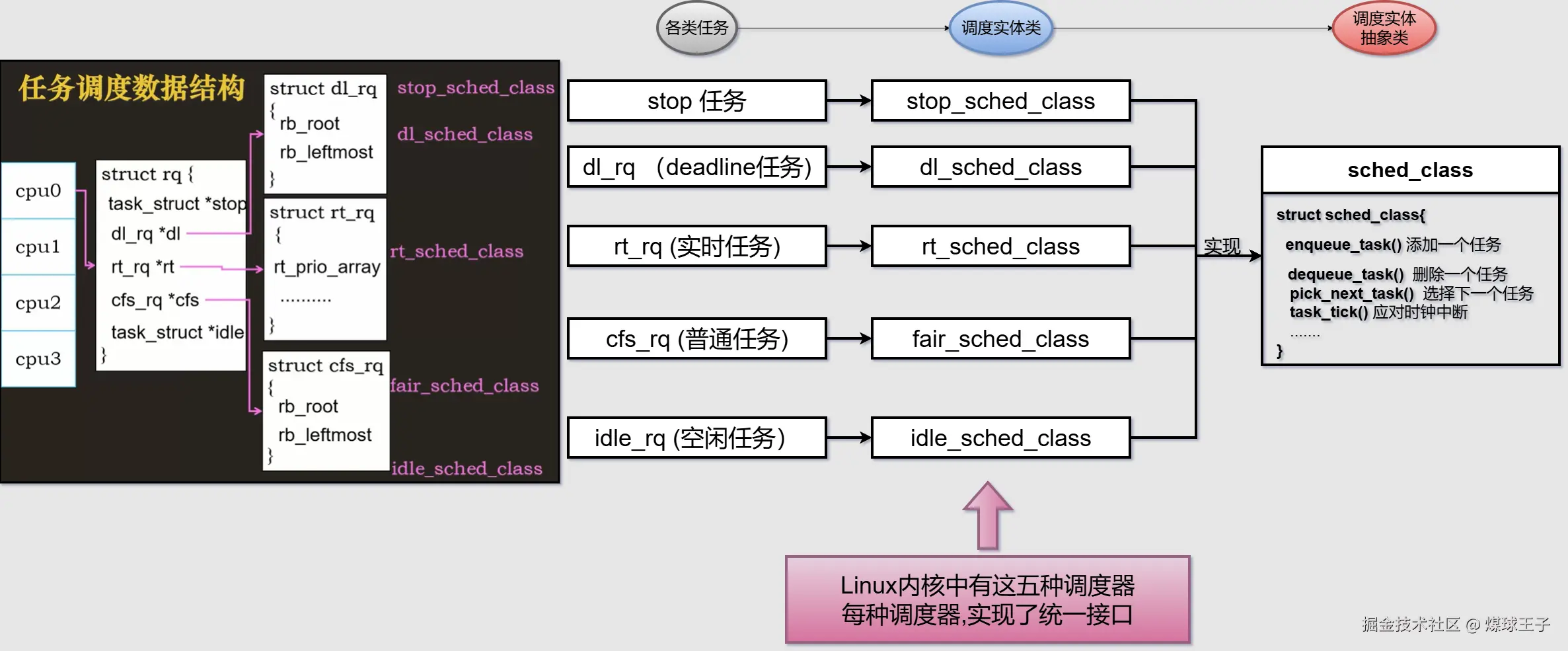 对上面的 数据结构rq , 做增删改查动作,于是抽象了一个 sched_class