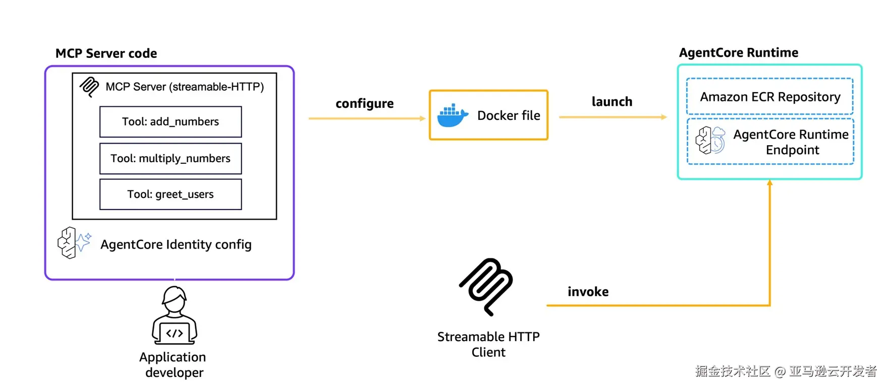 - 部署在 Amazon Bedrock AgentCore Runtime,由亚马逊云科技完全托管的 MCP 服务器运行时;