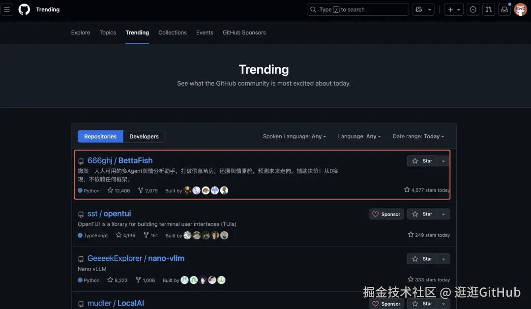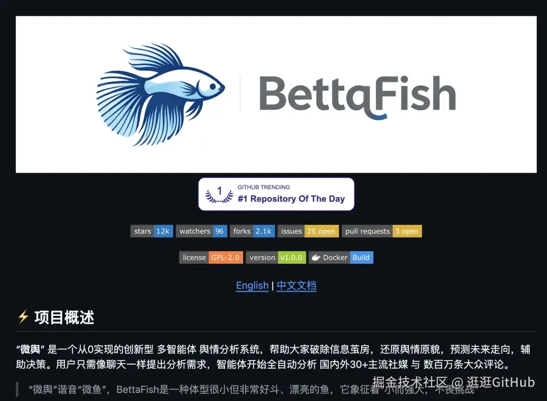 看今天的 GitHub 开源热榜,你会发现一个叫 BettaFish 的开源项目登顶了。