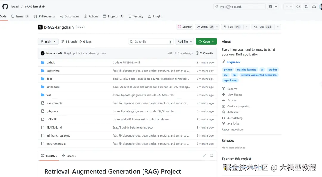 今天为大家分享一款从RAG基础知识到高级实现的宝藏级开源指南------bRAG-langchain,帮你轻松跨越检索增强生成的学习门槛。我自己在学习过程中也通过这个项目也收获很多。