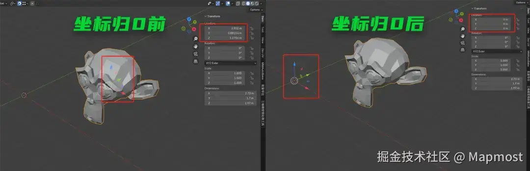 坐标归零:模型的位置固定后,需要将模型的坐标轴归零,防止模型在加载过程中出现位置偏移;