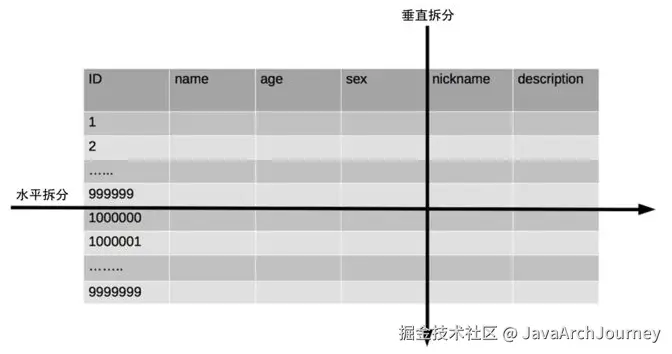 当单个业务模块的数据量也达到瓶颈时(如订单表已超亿级),垂直拆分也无法解决。这时就需要水平拆分。