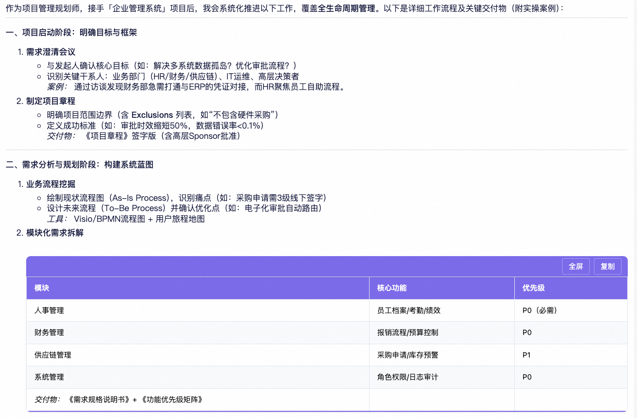 - 问题1,如果你作为一个项目管理规划师,请你详细描述一下当接到了一个做"企业管理系统"的需求后,都要开展哪些工作