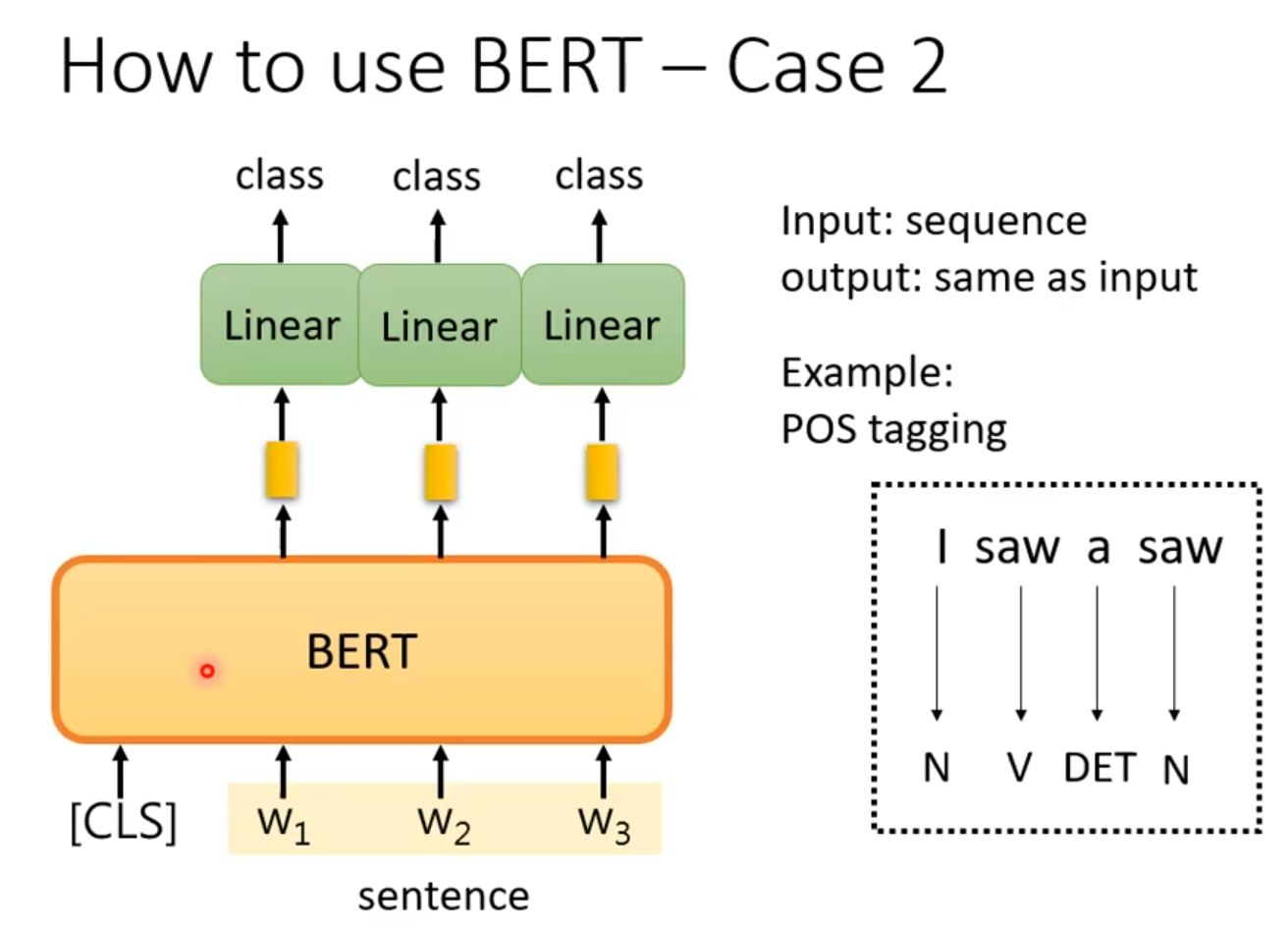 每个词元对应的输出向量被送入其各自的线性分类层,由该分类器判断该词元所属的特定标签。