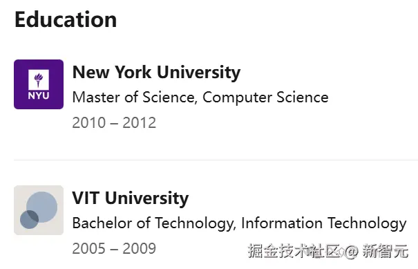 他毕业于纽约大学(NYU)和韦洛尔理工学院(VIT Vellore)。