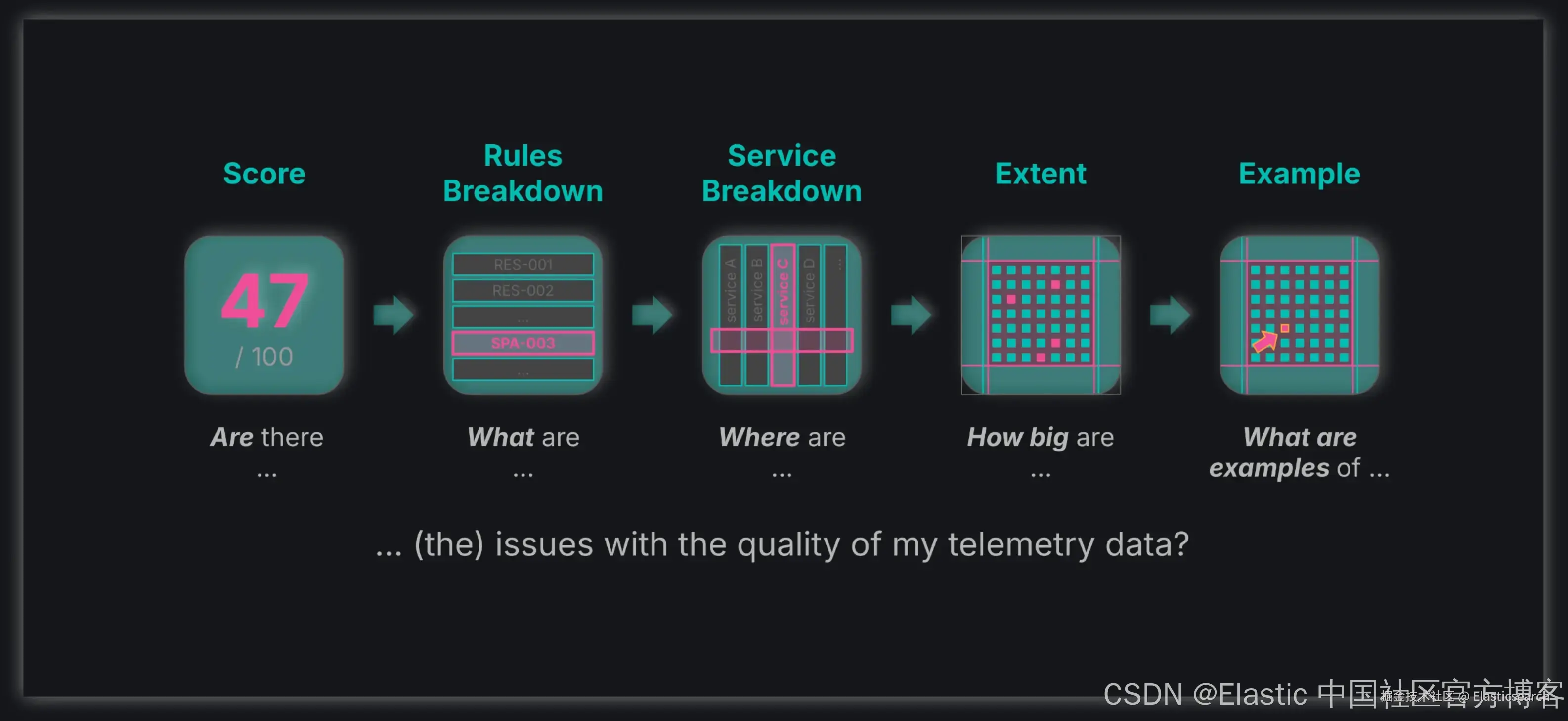 OpenTelemetry 的采用率正在快速上升,越来越多的公司依赖 OpenTelemetry 来收集可观测性数据。虽然 OpenTelemetry 提供了清晰的规范和语义约定来指导遥测数据收集,但它也带来了显著的灵活性。高灵活性意味着高责任 ------ 基于 OTel 的数据收集容易出现问题,导致中等或低质量的遥测数据。低质量数据会阻碍后端分析、混淆用户并降低系统性能。为了从 OpenTelemetry 数据中获取可操作的洞察,保持高数据质量至关重要。Instrumentation Score 项目通过提供一种标准化方法来衡量 OpenTelemetry 数据质量,解决了这一挑战。尽管规范和工具仍在发展中,但其基本概念已经非常有吸引力。在本文中,我将分享我在实验 Instrumentation Score 概念中的经验,并演示如何利用 Elastic Stack ------ 使用 ES|QL、Kibana Task Manager 和 Dashboards ------ 在 Elastic Observability 内基于该方法构建数据质量分析 POC。