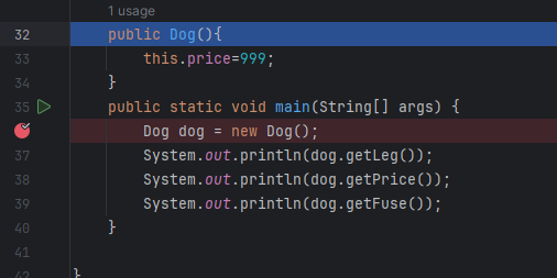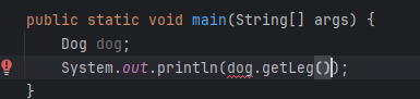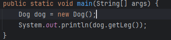 可以看到我在创建leg时已经赋值为4,而在我自己写的构造器中给leg赋值为3。那么运行main函数结果为3。当我们new对象时就会调用构造器,就像调用方法一样,所以构造器也叫构造方法。