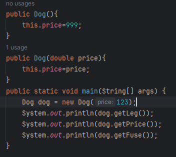 那么dog1的价格会是多少呢?答案是999,因为dog1调用的时第一个无参构造器。
