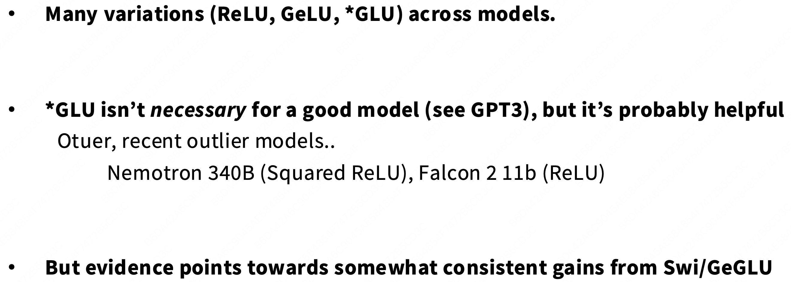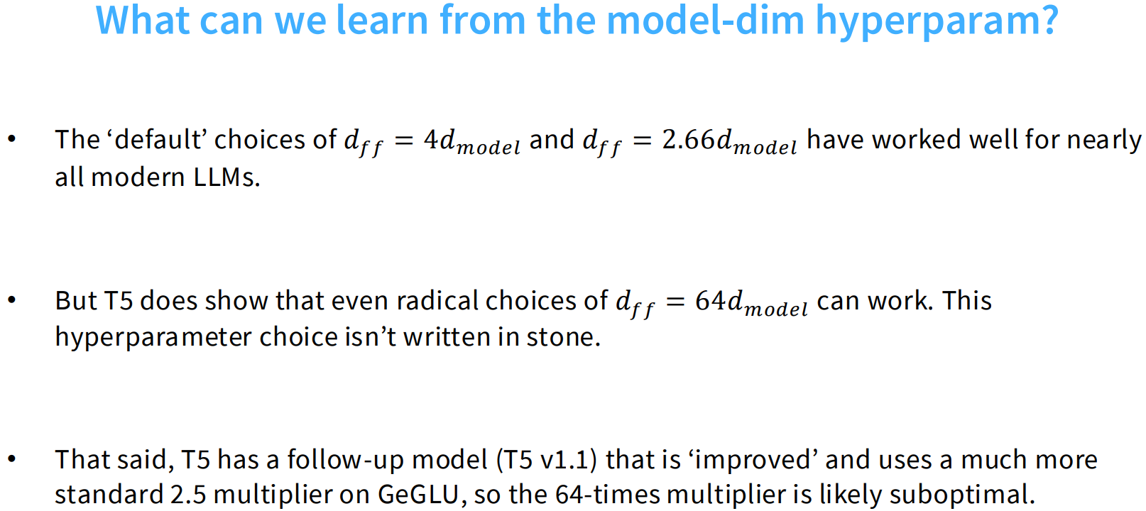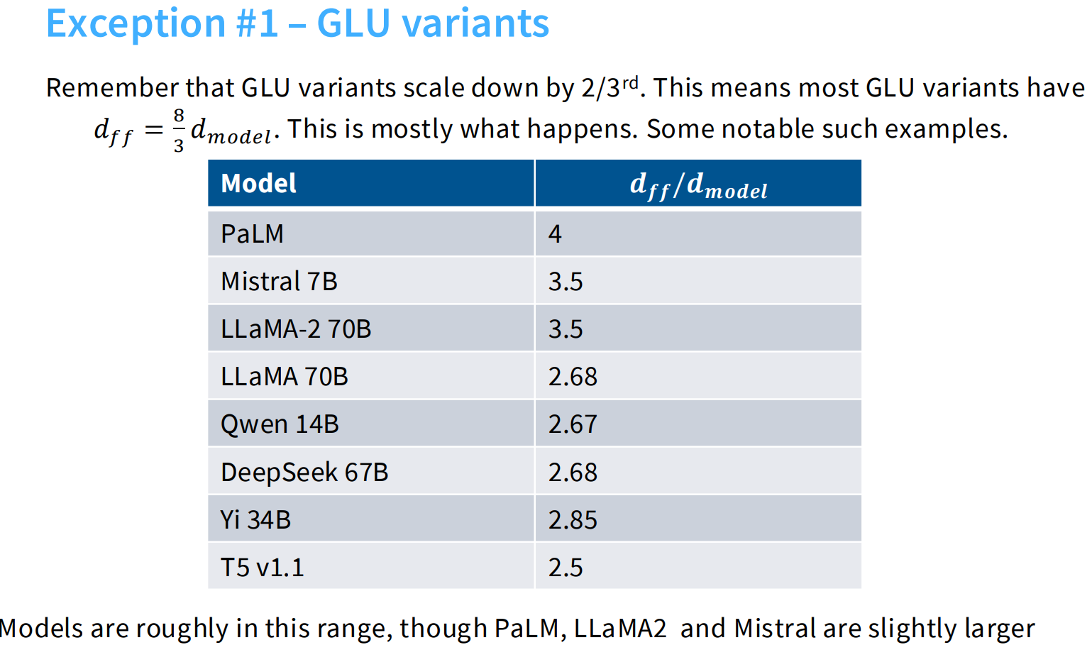这个是前面讲到的,glu为了保证总体的模型参数量不变,通常dff是d_model的8/3倍。