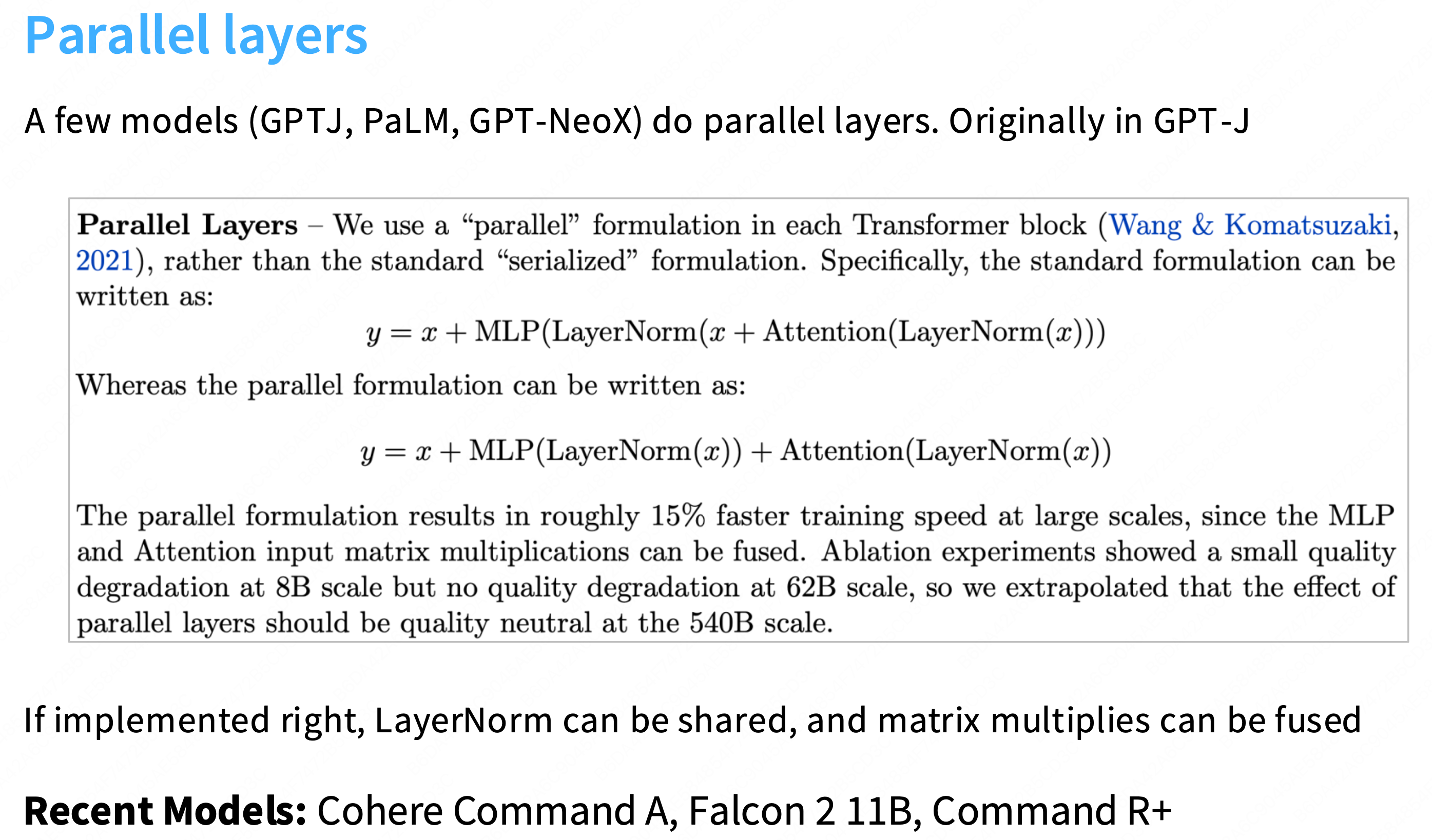 并行 (Parallel) 架构 (GPT-J / Cohere 风格):
