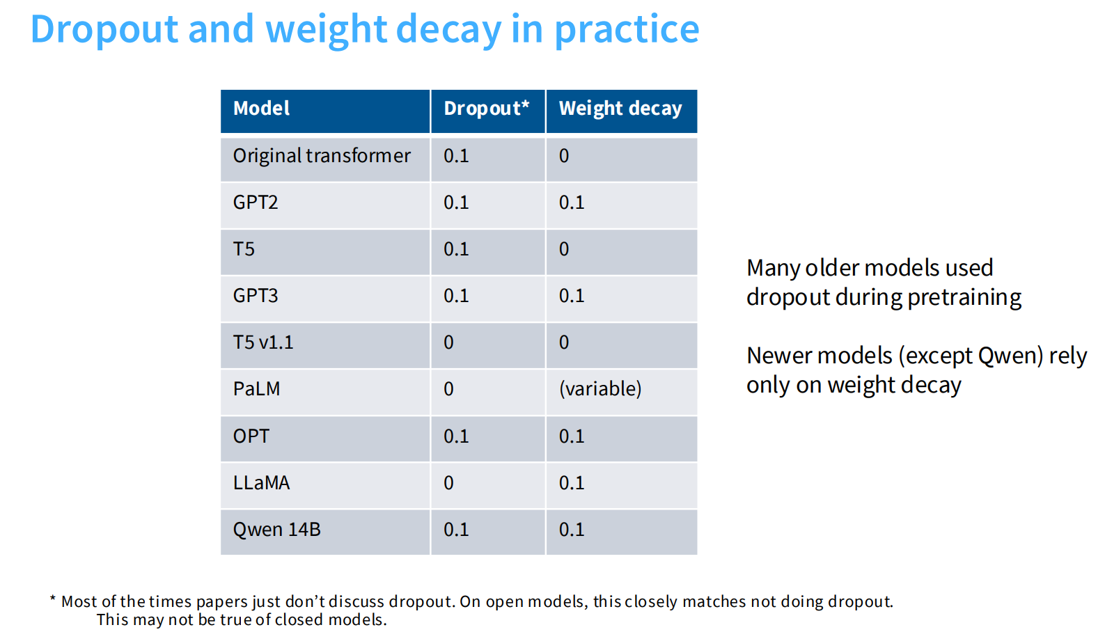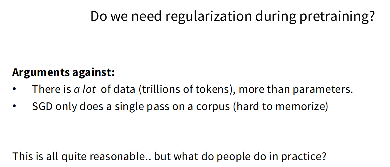 似乎预训练用了大量的数据,而且基本只跑一个epoch,根本不会出现过拟合,这样是不是就不需要dropout?