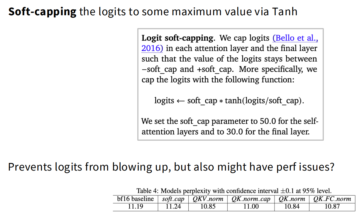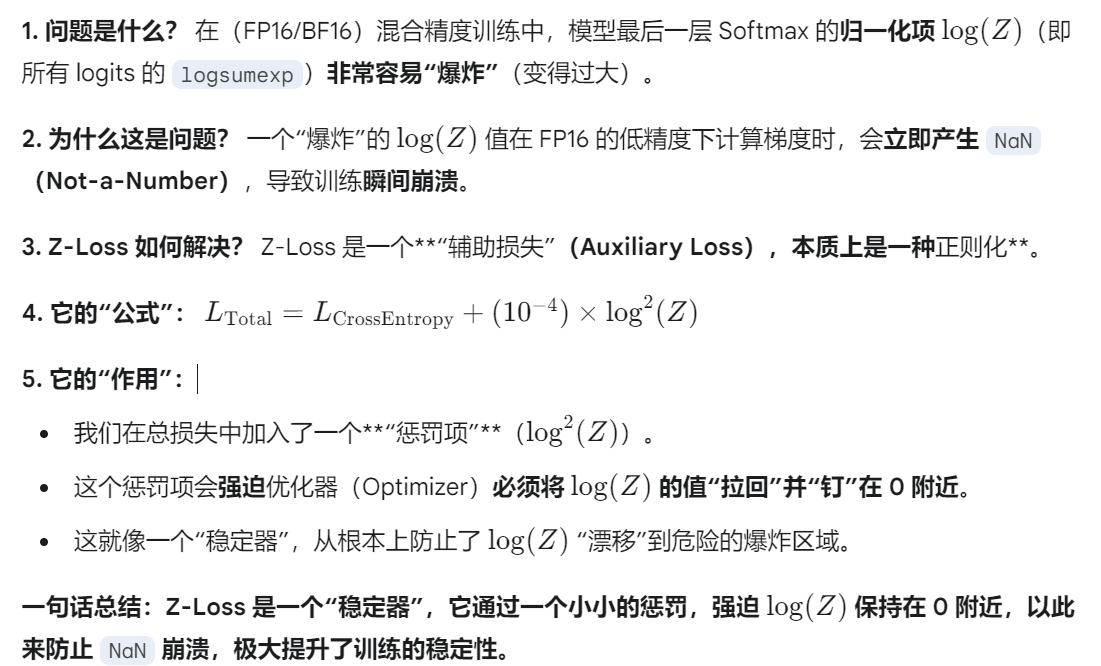 Soft-capping是 "稳定性工具箱"中的一个(过时的)技巧。它虽然能有效防止NaN崩溃,但它既拖慢了训练速度 ,又损害了模型最终的质量 ,是一种"下下策"。它不如Z-Loss(质量中性)或QKV_norm(质量提升)等更现代的技巧。通常qk-norm的效果是最好的。