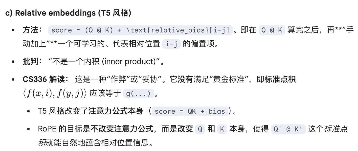 + bias这一项的加入,从数学上彻底破坏了这种重排的可能性。这意味着 T5 风格的位置编码无法与这些 O(L) 的高效注意力算法兼容。