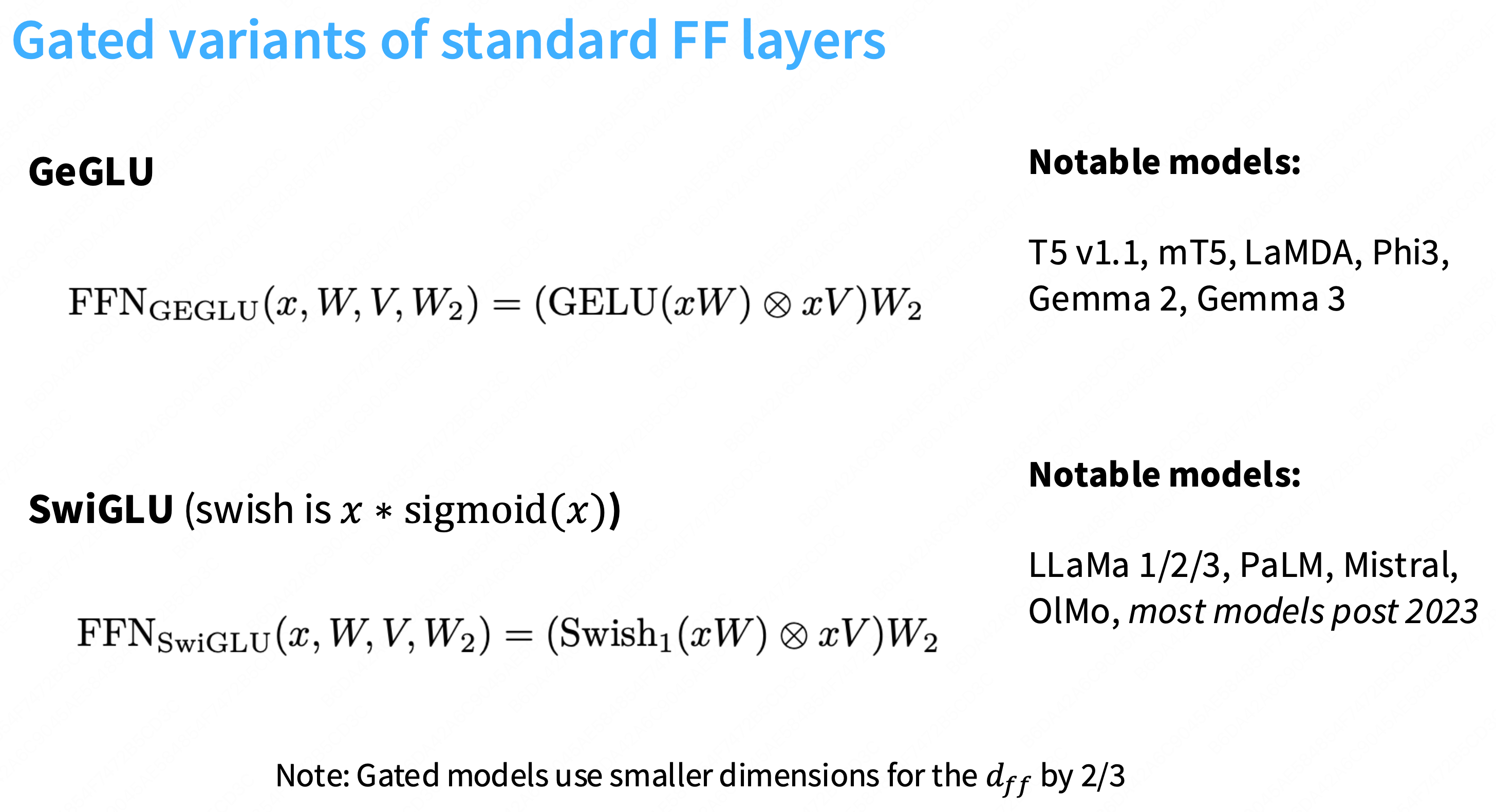 通常dff升维的维度是d_model的4倍(经验上)。下面是一些变体:
