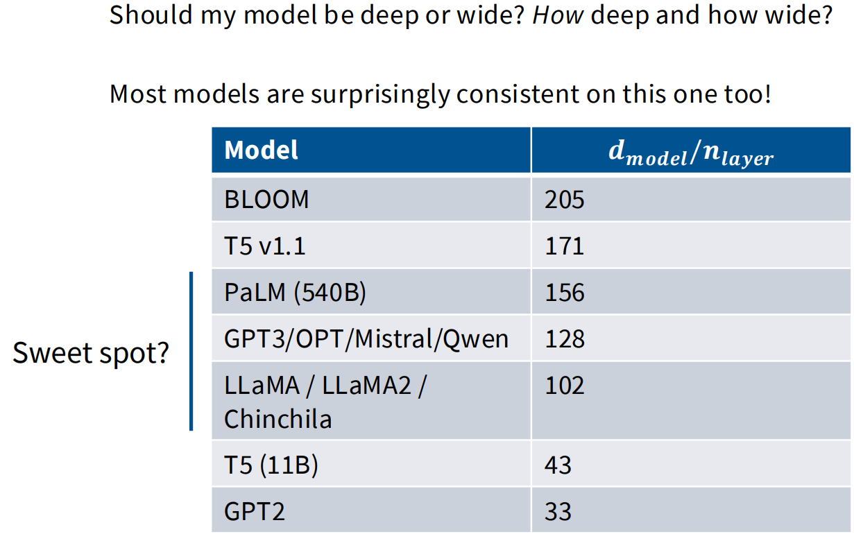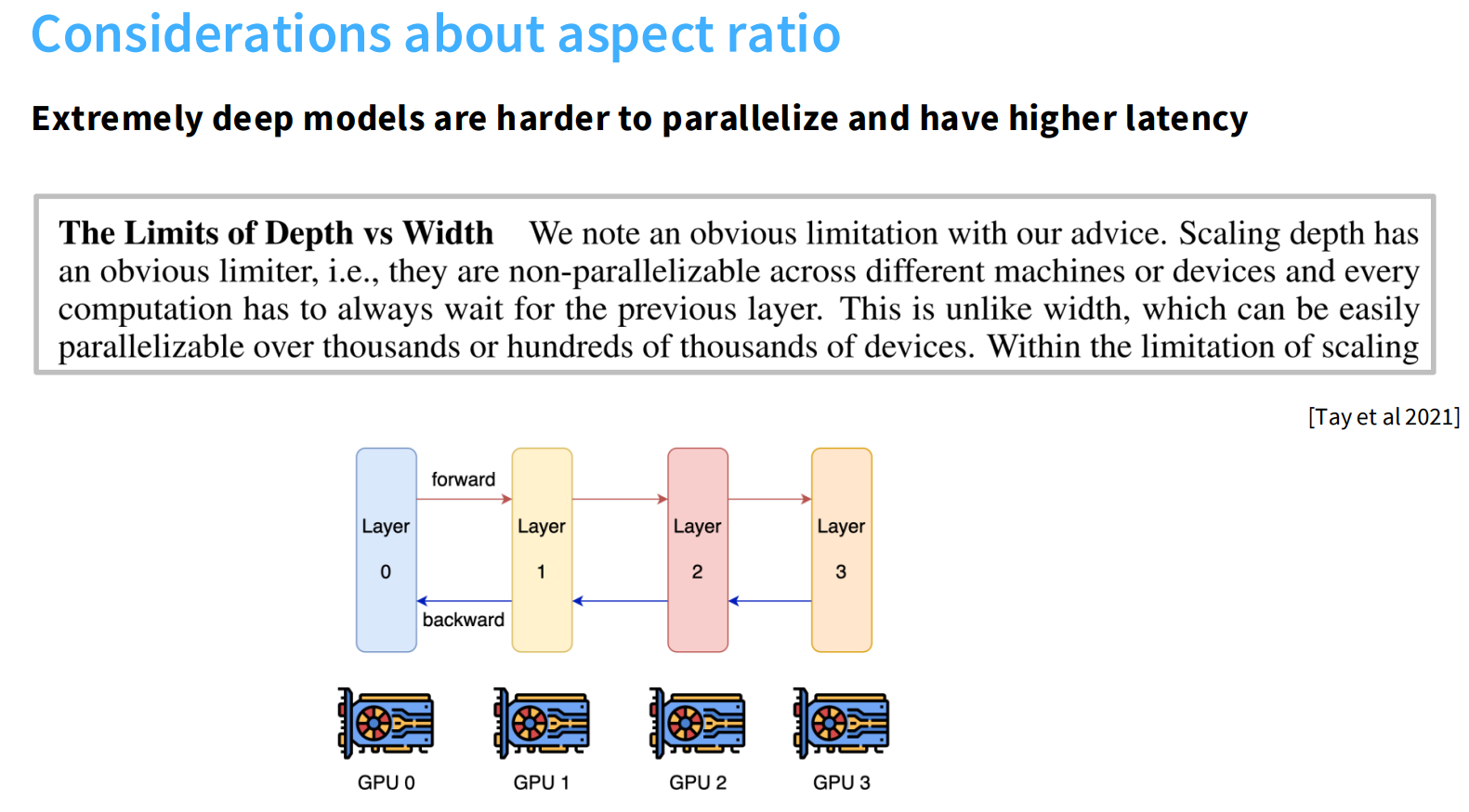 通常来说,深度代表着模型更加聪明,宽度代表着计算的高效。Aspect ratios可以控制我们计算的并行化程度。