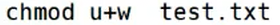 这行命令表示为test.txt文件的拥有者加上w(可写)权限。