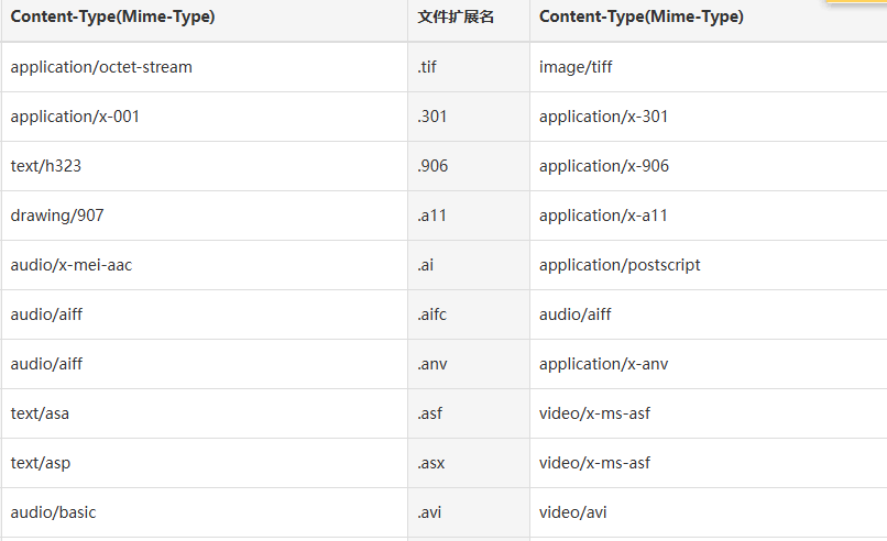 - Content-Type: 这个属性当我们进行传递文本之外的东西,我们必须要使用制定。会有一个这种表,HTTP Content-Type(MIME)对照表!我们需要使用里面特定的格式进行映射才行,然后还需要注意的是发送以及读取图片的超文本的格式必须是二进制的方式来进行读取,不能是按照字符的方式进行读取!