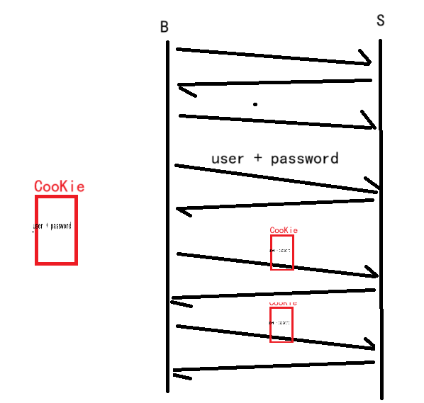 Cookie 会保存我们的一些信息,例如我们登陆的账户以及密码! 他是怎么实现的呢?我来画图给大家讲解一下。简单来说就是每次发送请求的时候都会携带这个 Cookie 的信息。对于同一部分的信息,就不要我们进行多次传递了。