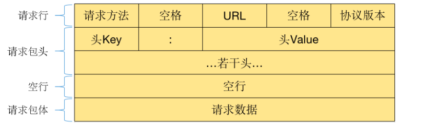 想要了解 http 就要学习他的协议的相关字段。本质就是一个结构体,下面我来详细的介绍一下。他总的可以分成四个层次:请求行、请求属性字段、数据部分。