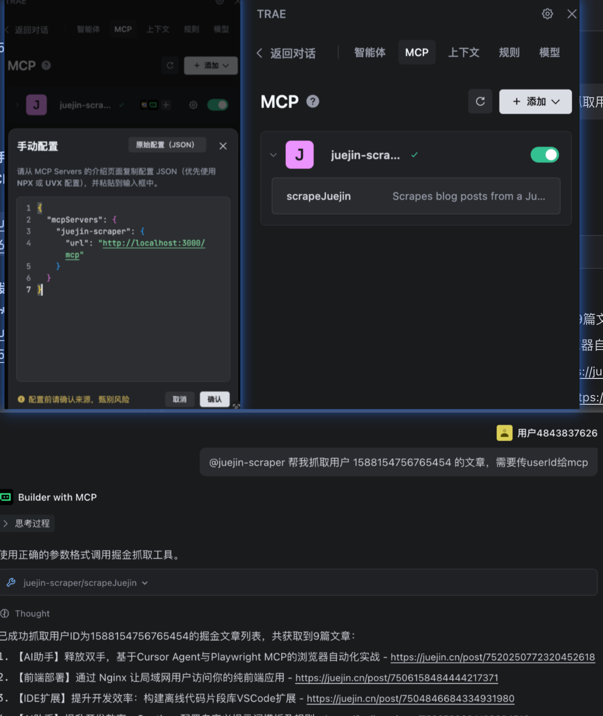 1. 通过 juejin-scraper MCP传参userId给MCP