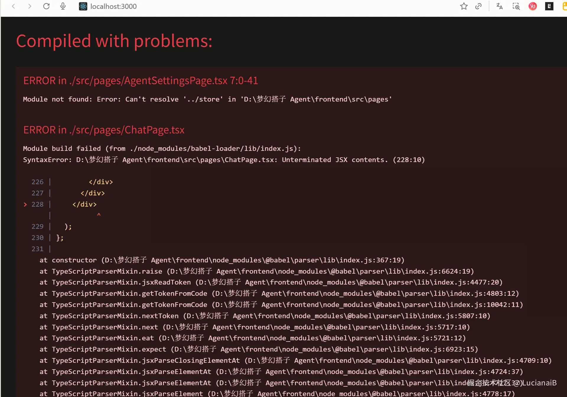 SyntaxError: D:\梦幻搭子 Agent\frontend\src\pages\ChatPage.tsx: Unterminated JSX contents. (228:10)