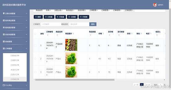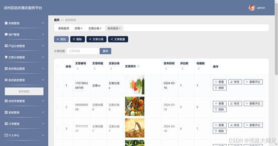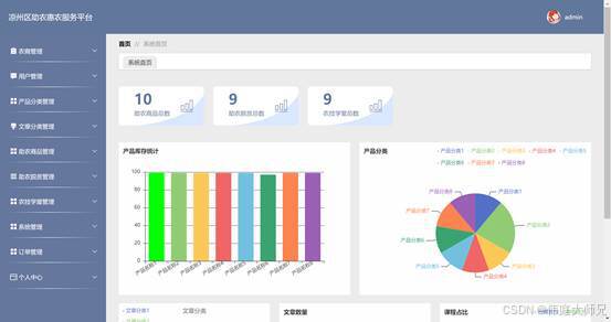 助农惠农服务平台是一个旨在促进当地农业发展和农民增收的在线服务系统。该平台为农民提供市场信息、技术支持和销售渠道,帮助他们提高生产效率和产品竞争力。通过整合农业资源和优化供应链管理,不仅提升了农产品的市场响应速度,还增强了农民之间的合作与交流,对实现区域经济的均衡发展和改善农民生活水平具有积极的推动作用。本文讲述了基于java语言开发,后台数据库选择MySQL进行数据的存储。该软件的主要功能是进行助农的管理。主要包括农商管理、用户管理、产品分类管理、助农商品管理、助农脱贫管理、农技学堂管理、订单管理等。