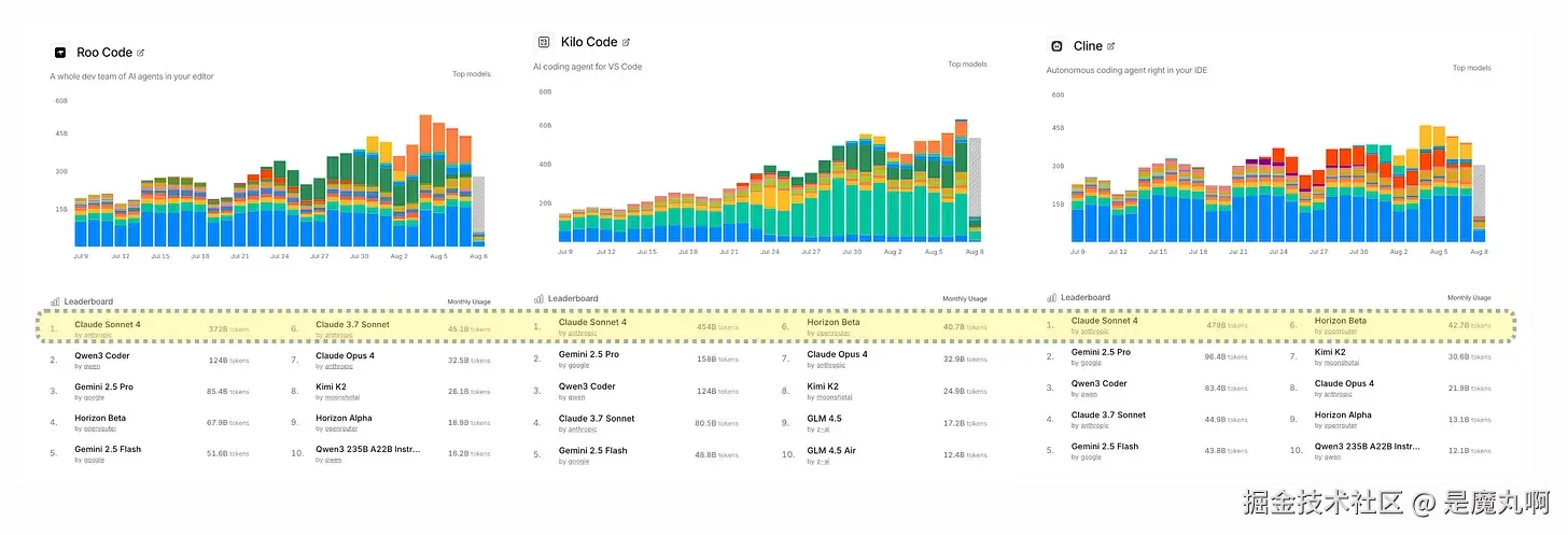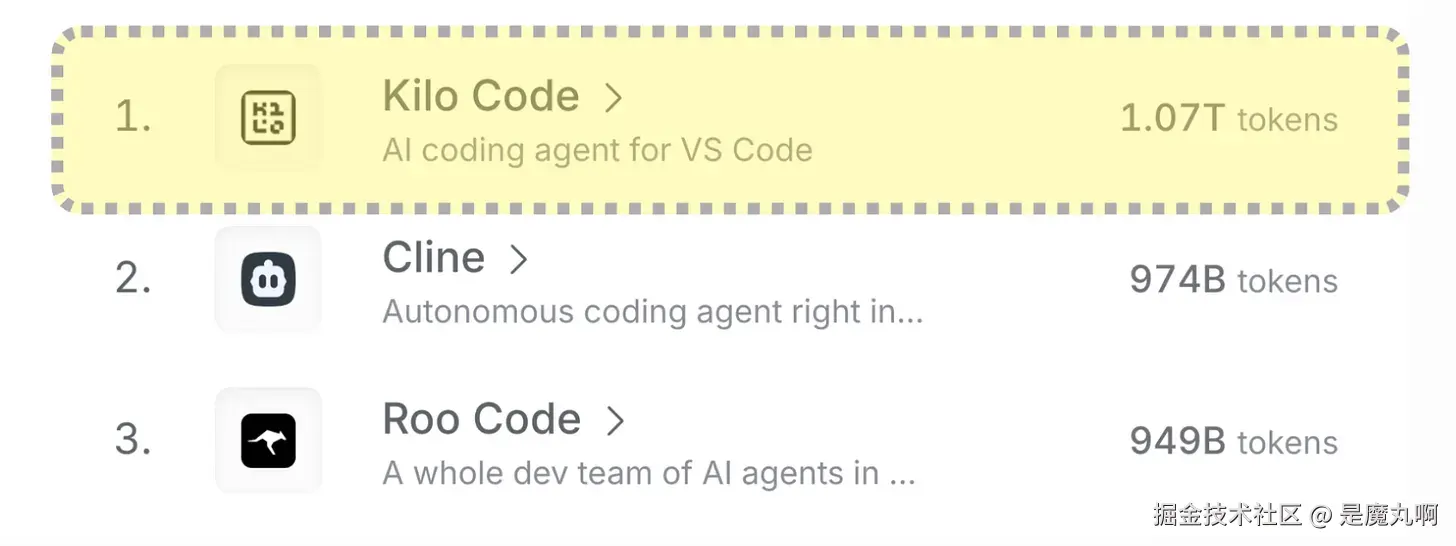 每个开源AI编码工具家族(Cline、Roo、Kilo)本月都在快速增长。