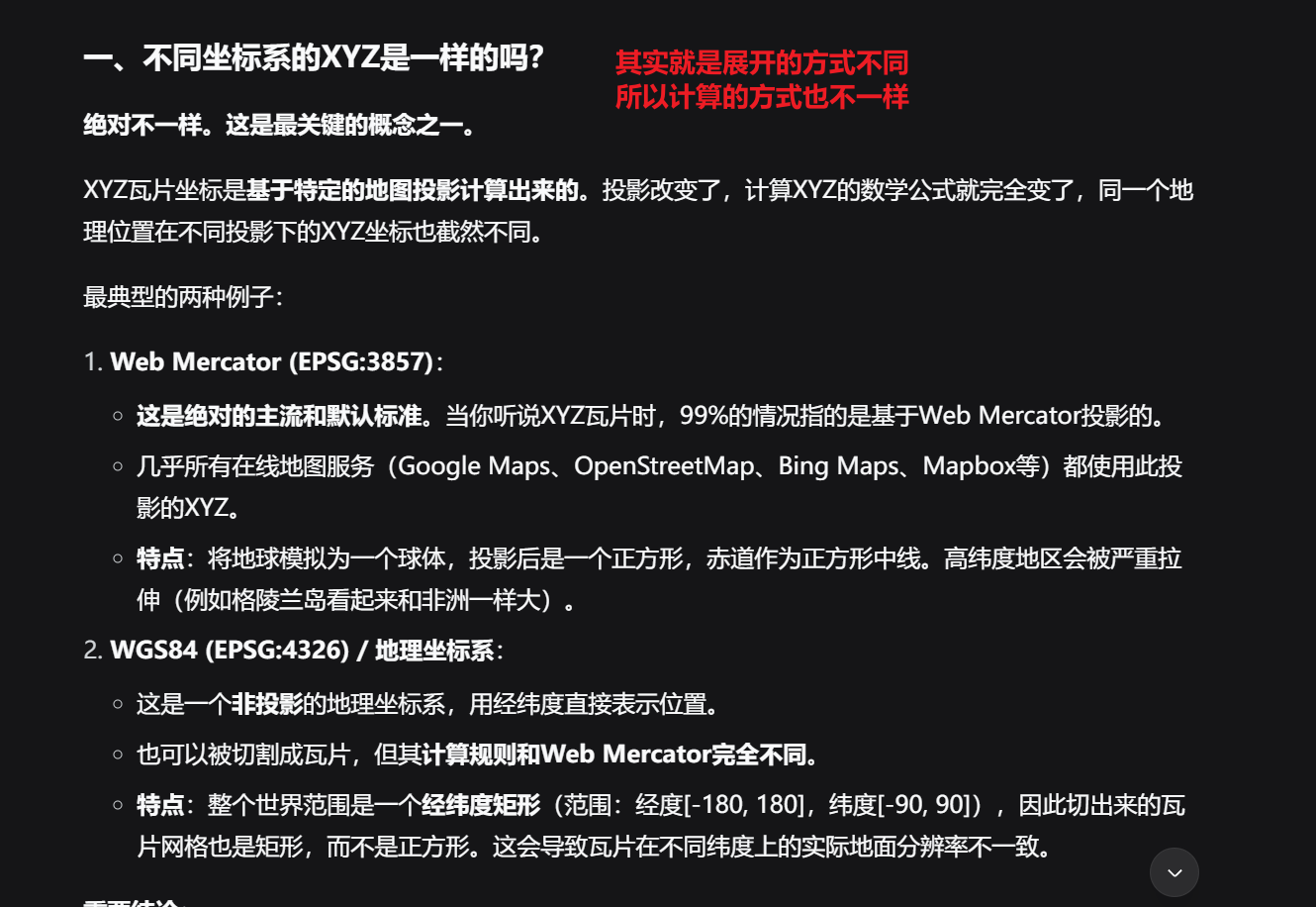 Y: 瓦片的纵向索引(纬度方向),从最上面(北纬85.0511°,Web墨卡托投影的最大纬度)为0,向下递增(注意:这与常规的数学坐标系Y轴向上不同)。