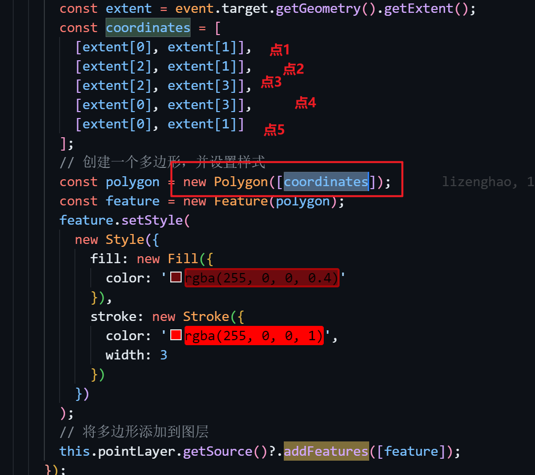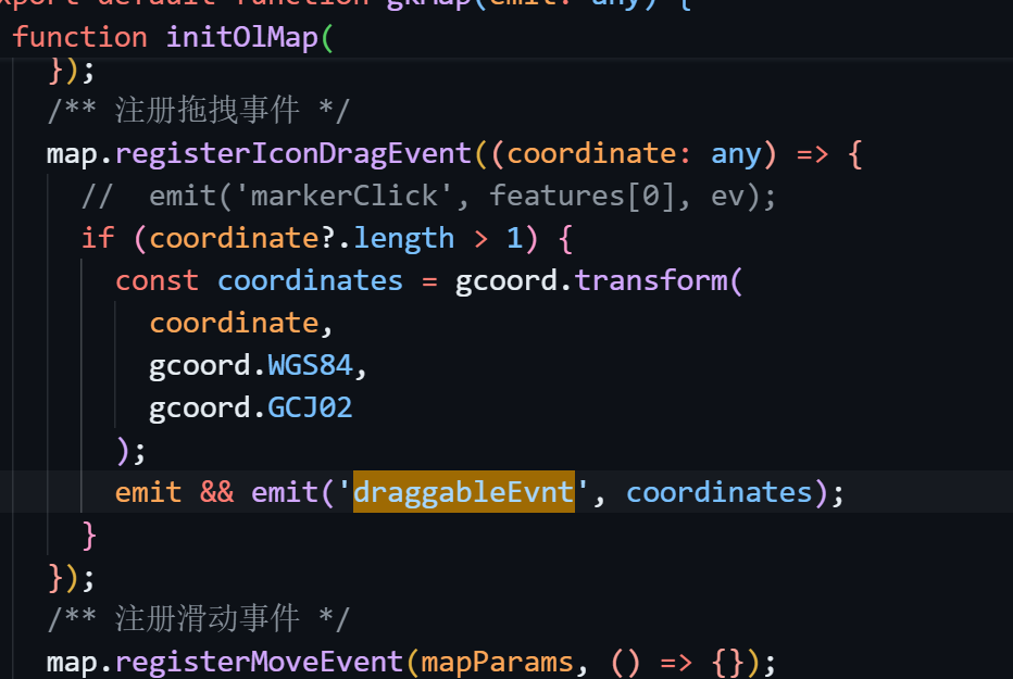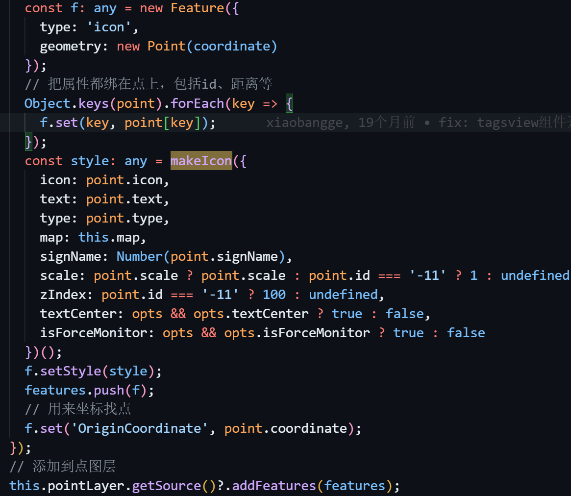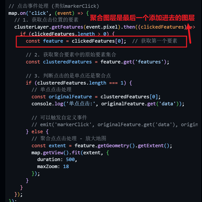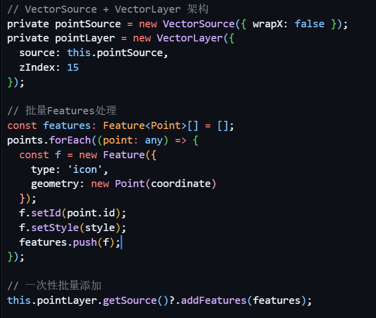 openlayer通过新建Feature要素对象,并把它添加在点图层pointLayer.getSource().addFeatures([feature])。而且他的事件是通过统一注册进行事件分发: